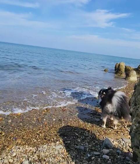 昔は怖がって海に近づけなかったのに、こんなに近くまで自ら行けた愛犬【いち】の成長に感無量でした。