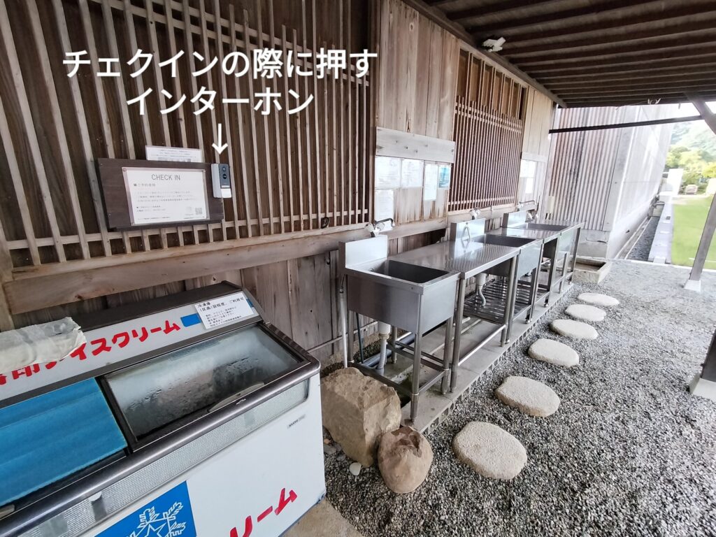 受付は、炊事場付近にあるインターホンを押して管理人さんを呼ぶか、