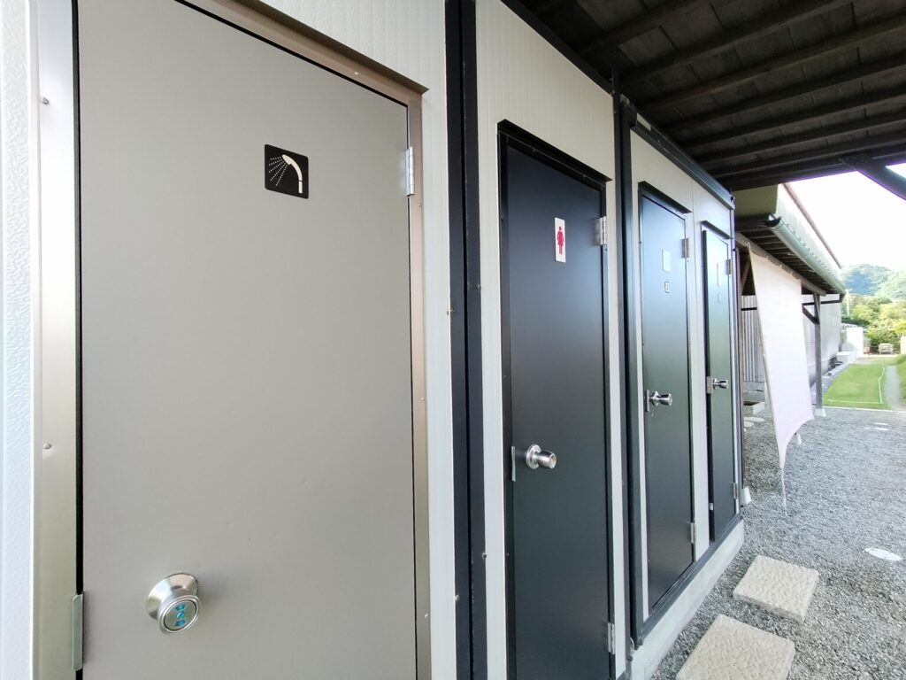 外の扉の前で靴を脱いでからシャワー室に入ります。