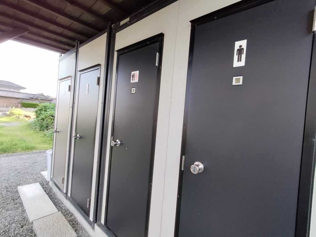 手前から男性専用1つ、男女兼用1つ、女性専用1つ、合計3つのトイレがありました。