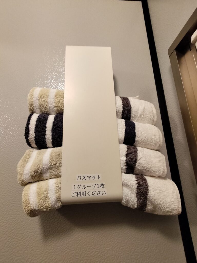 バスマットを使用した後は、シャワー室を出てすぐ隣にある「バスマット回収ボックス」へいれます。