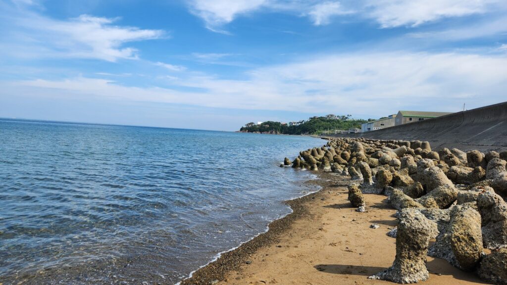 引き潮の時であれば、堤防にある宿泊者専用の階段を降りると浜辺まで行くことができます。