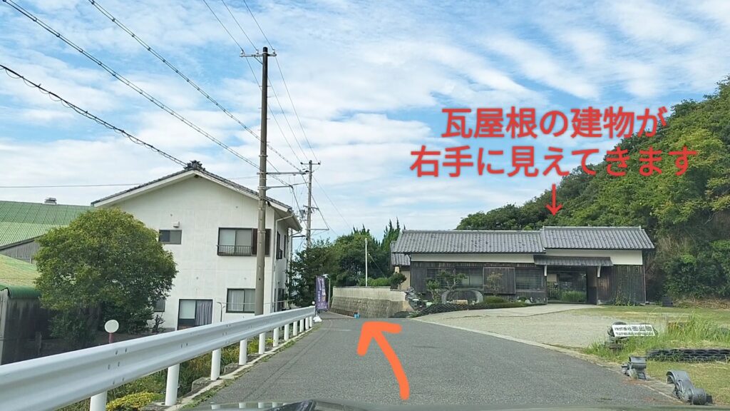 右手に瓦屋根の建物が見えて来たら、そのまま直進します。