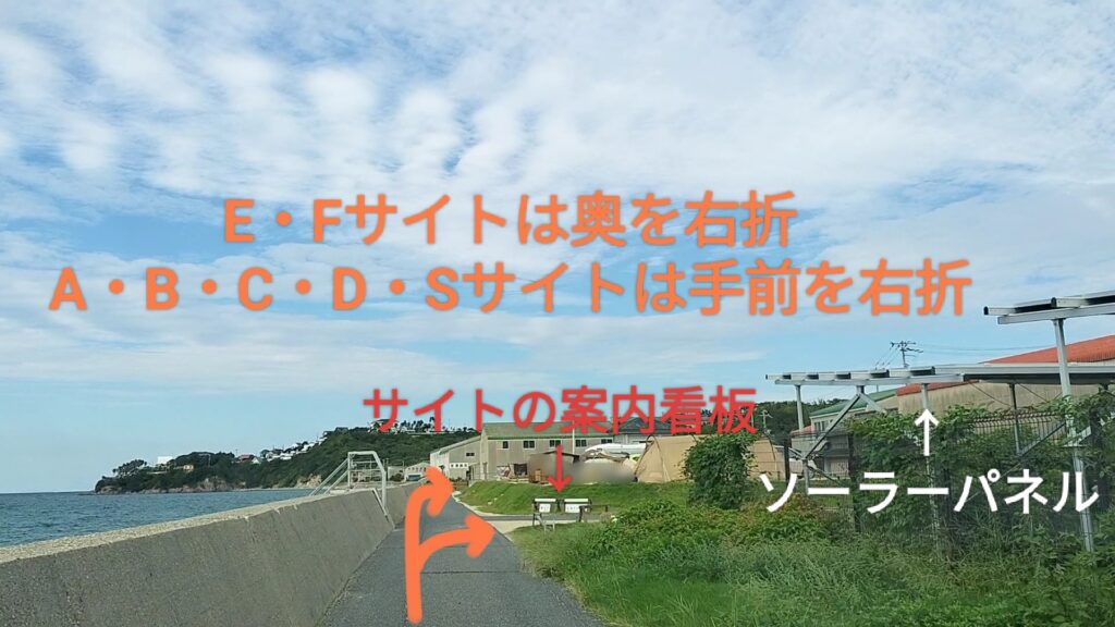 A・B・C・D・Sサイトは、手前の曲がり角を右折。